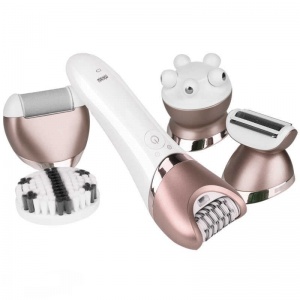ეპილაციის თავი + საპარსის თავი + საწმენდი ფუნჯის თავი + მასაჟორის თავი + კალუსის მოსაშორებელი თავი + ადაპტერი + საწმენდი ფუნჯი