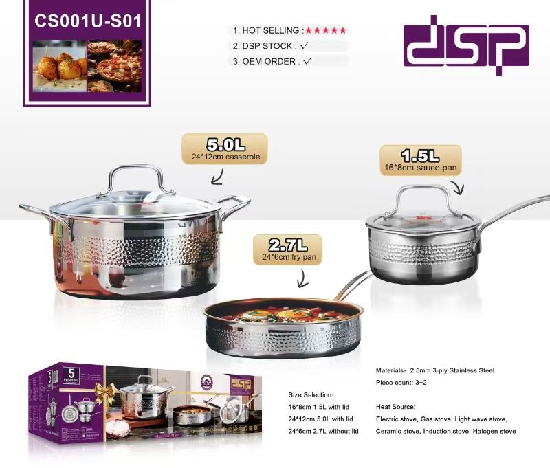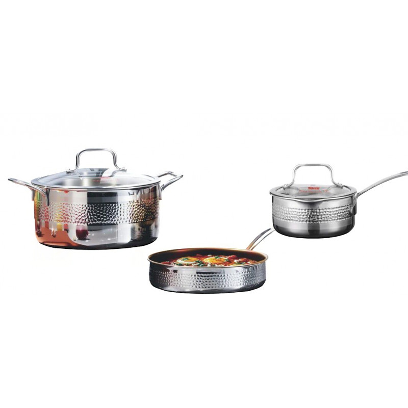 ჭურჭლის მოცულობა (ლიტრი) ქვაბი 5, ტაფა 2.7, სოუსის ქვაბი 1.5